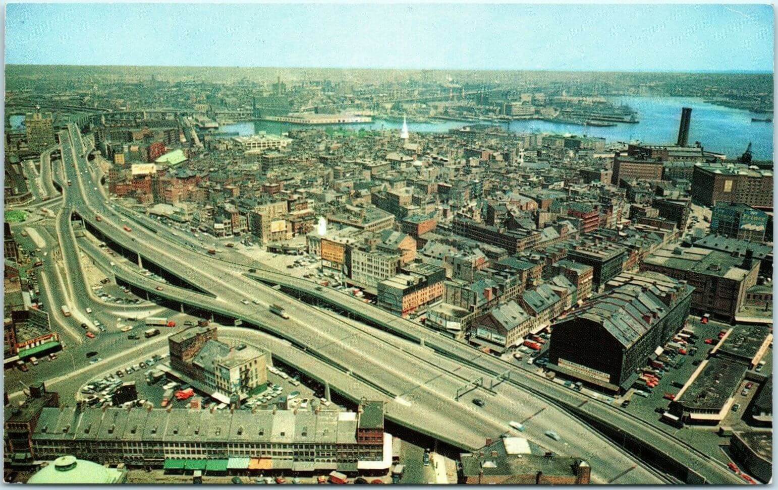 The state issued a “Master Highway Plan” for highways in 1948. The plan called for two loops around the city (outer and inner), with several expressways extending into the urban center. This was known as a spoke and wheel design. The outer wheel became Route 128, finished in 1960. It wrapped around the city on the north, west, and south sides, about 10 miles from downtown. The proposed inner loop included the Central Artery on the east side. The six-lane Central Artery cut through a swath of the North End during the 1950s and opened up to elevated traffic through the city. The rest of the inner loop remained unbuilt for later planners to tackle.