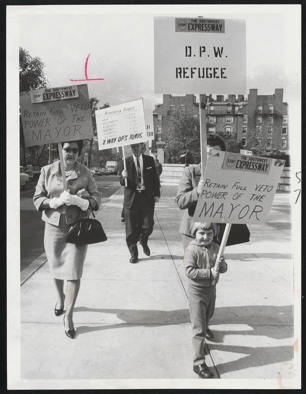In the 1950s and early 1960s, construction of the Inner Belt and the Southwest Expressway seemed inevitable. Institutional support was broad. To revitalize downtown Boston, Mayors John Hynes (1950–1960) and John Collins (1960–1968) pushed the two projects. The Boston Chamber of Commerce, organized labor, and Boston newspapers also supported them. Both projects would have been Interstate highways. Thus the federal government would pay for 90 percent of construction costs and the state only 10 percent. State officials were eager to take advantage. A Boston Globe article in May 1962 called the Inner Belt “by far the most important road ever planned for metropolitan Boston.” Ed Logue, director of the Boston Redevelopment Authority, said that if the highways weren’t built, the “core business district would be hollow.”